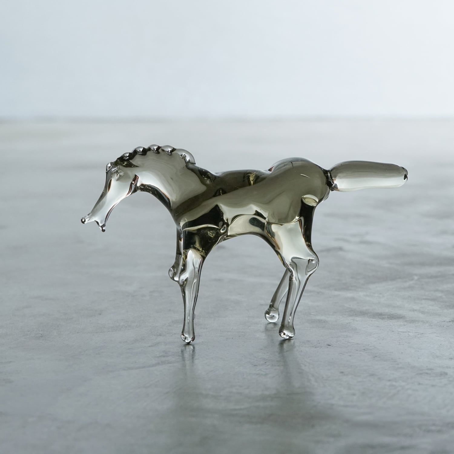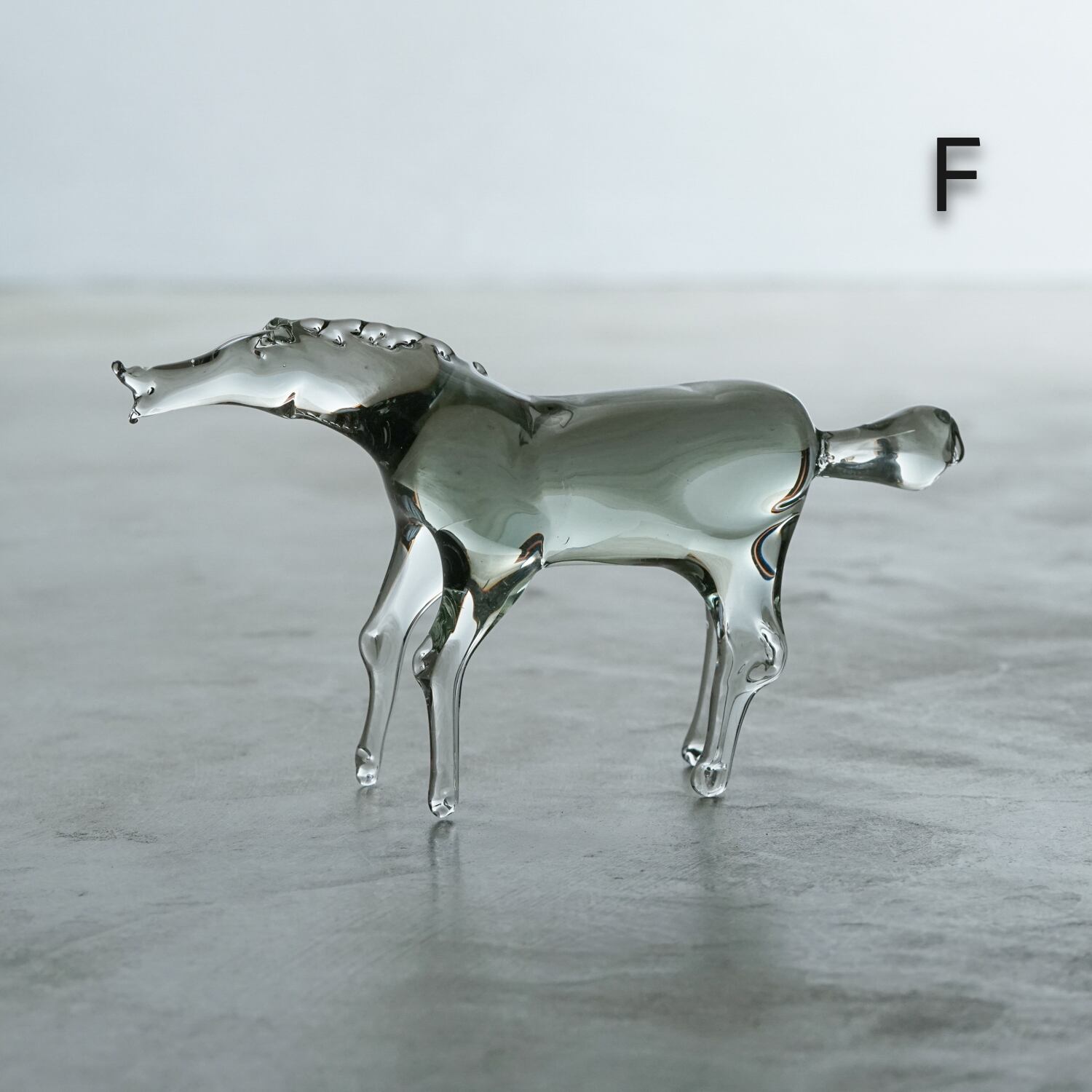 Mr. Wada studied glass art in Toyama and Kanagawa after working in the corporate field, and currently works in Kanagawa Pref. He adds subtle yet eye-catching shapes such as curves and roundness to simple designs. With earnest craftsmanship, he habitually writes down ideas in notebooks and applies them in his new works. The hint of grey and brown in the transparent glass further accentuate his works’ unpretentious, refined beauty of form.