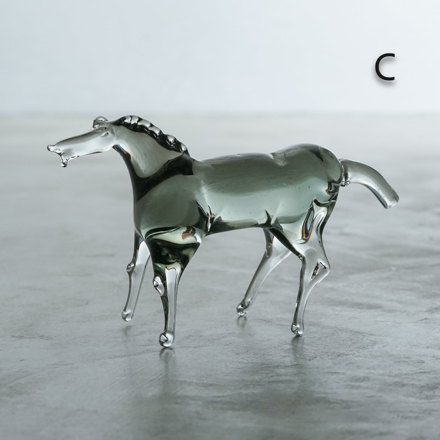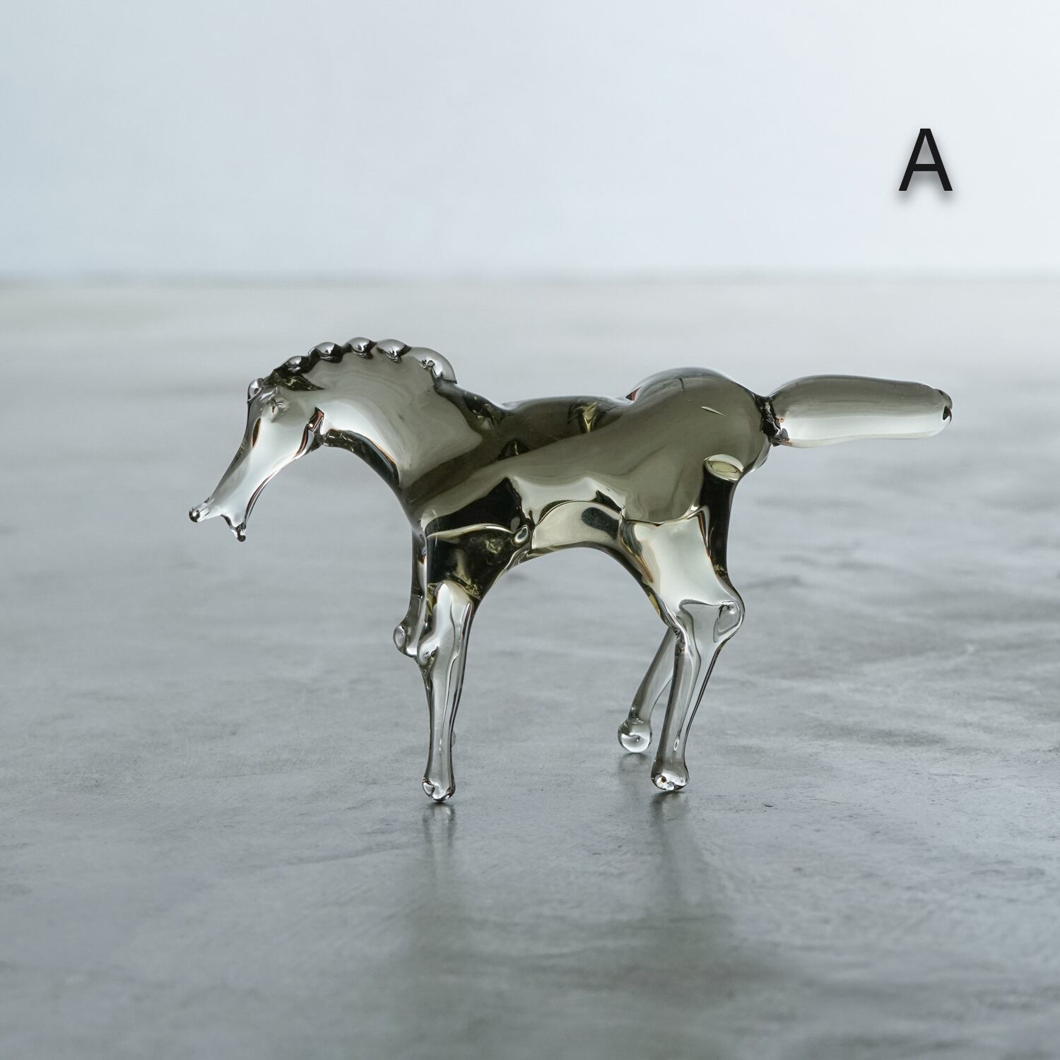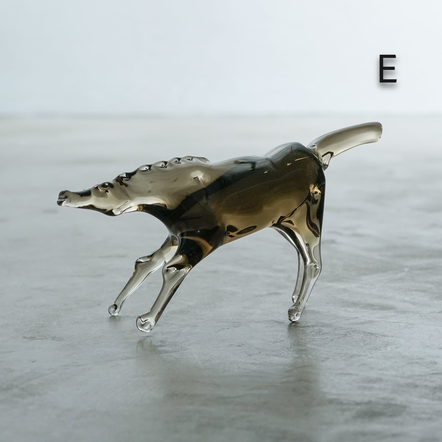 シンプルなデザインを軸に、くびれ、丸みなど多様なアクセントを効かせた、さりげなくも目を引く造形が特徴的。日頃からノートにアイデアを書き留めて実践し、新しい造形に活かすなど、基本を大事にしつつ作品に磨きをかけ続ける職人的な堅実さが、作品からも感じられる。仄かにガラスにのったグレーや茶などの色も、奇をてらわない洗練された造形美をより一層際立たせている。