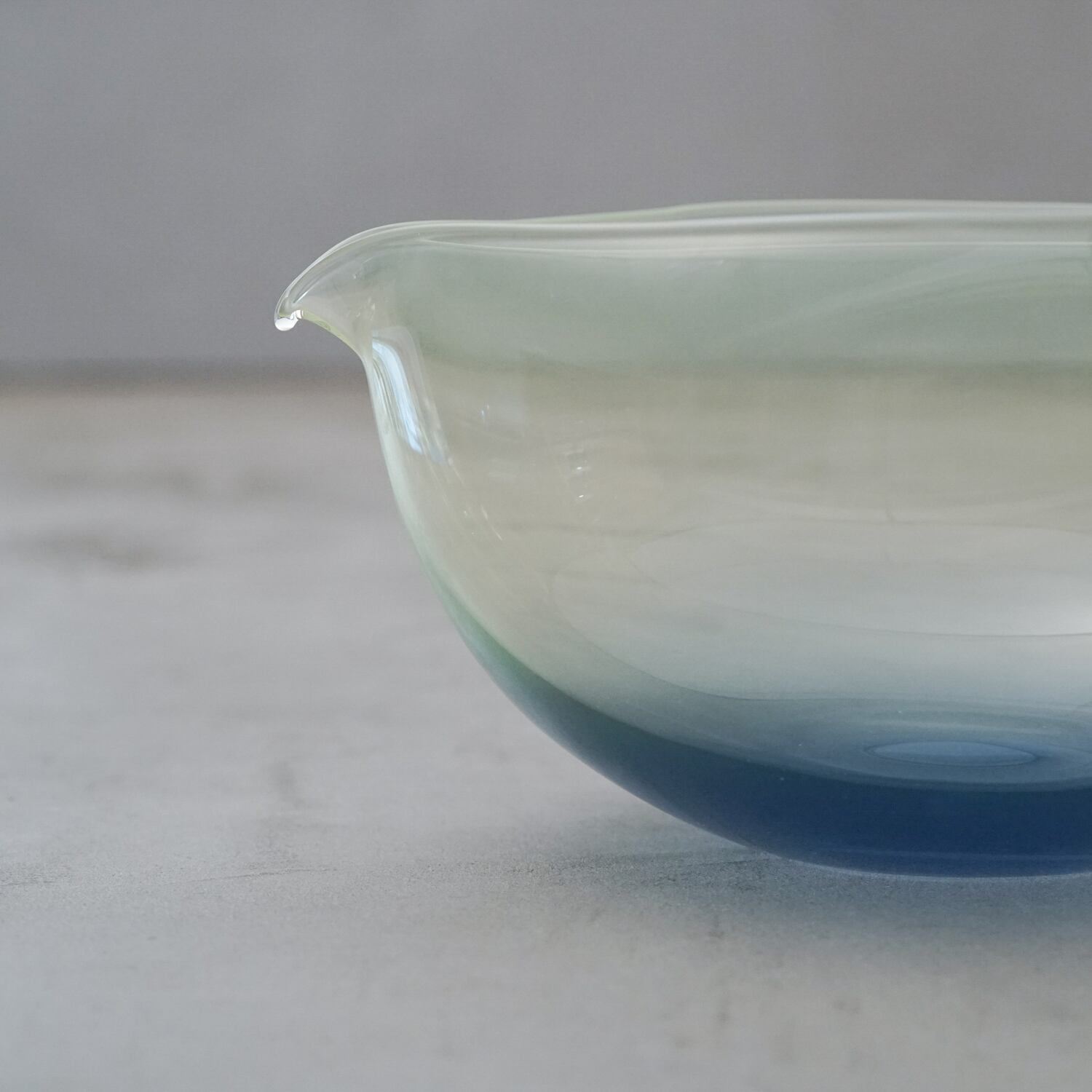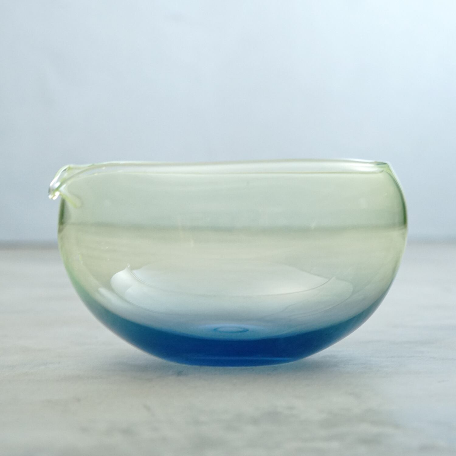 「自然の、ありのままの美しさ」を大切にした作品づくりが特徴。ガラスに空気を吹き込んでできた自然な球を、その形のまま切って半球状のうつわに仕上げるなど、造形が作為的にならないよう技法に工夫が凝らされている。色に関しても同様で、「目で見て感じるものに単色のものはない」という感覚から生み出される色彩の溶け合いやグラデーションが、自然的な美しさを巧みに表現している。