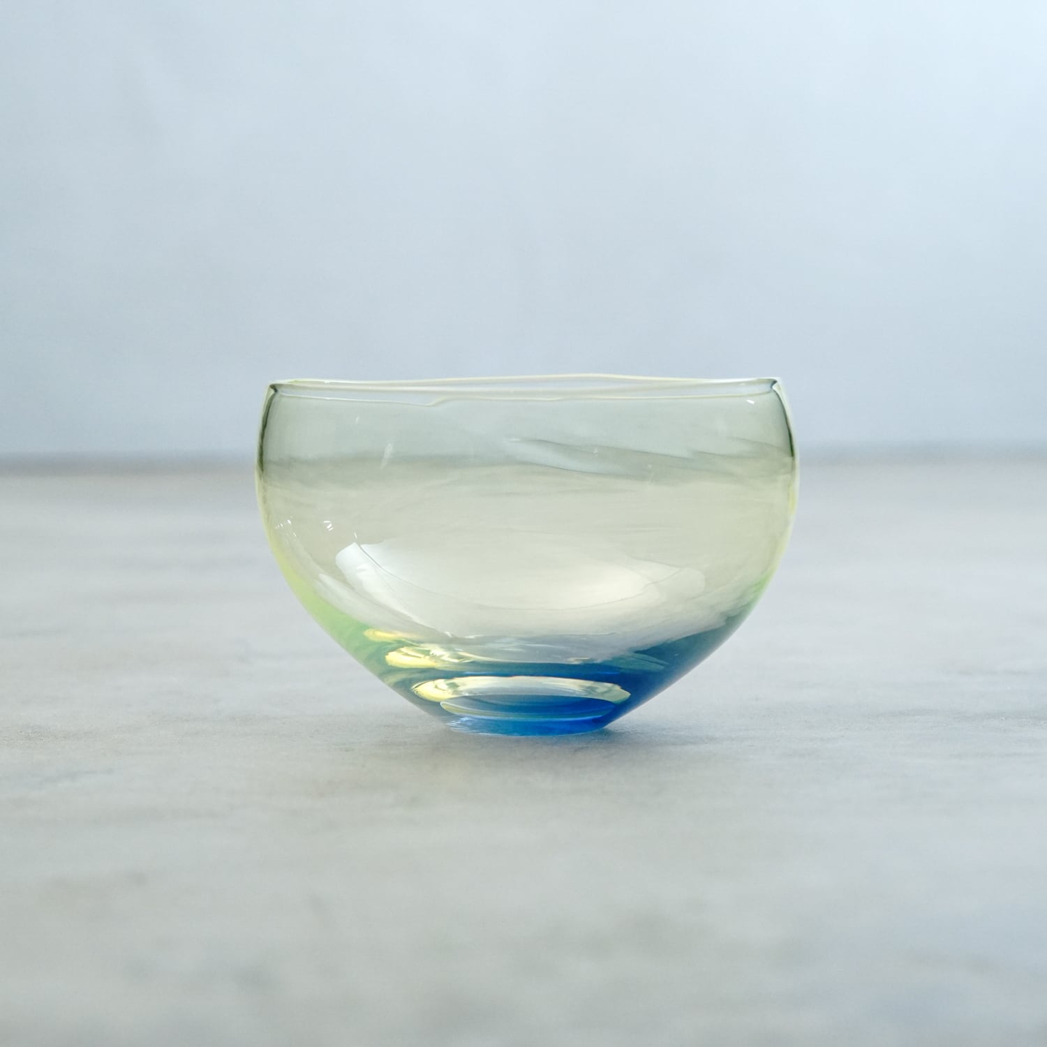 「自然の、ありのままの美しさ」を大切にした作品づくりが特徴。ガラスに空気を吹き込んでできた自然な球を、その形のまま切って半球状のうつわに仕上げるなど、造形が作為的にならないよう技法に工夫が凝らされている。色に関しても同様で、「目で見て感じるものに単色のものはない」という感覚から生み出される色彩の溶け合いやグラデーションが、自然的な美しさを巧みに表現している。