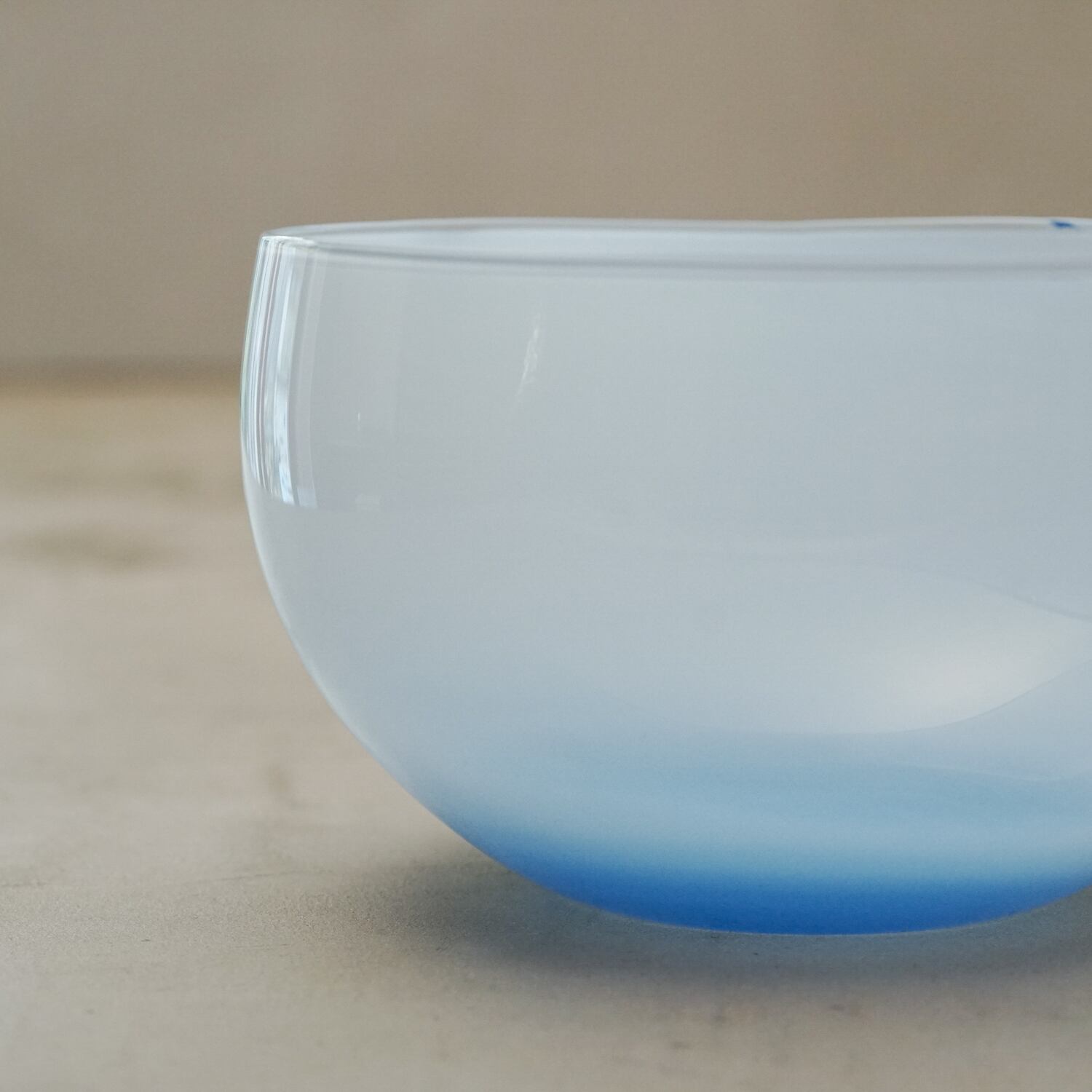 「自然の、ありのままの美しさ」を大切にした作品づくりが特徴。ガラスに空気を吹き込んでできた自然な球を、その形のまま切って半球状のうつわに仕上げるなど、造形が作為的にならないよう技法に工夫が凝らされている。色に関しても同様で、「目で見て感じるものに単色のものはない」という感覚から生み出される色彩の溶け合いやグラデーションが、自然的な美しさを巧みに表現している。